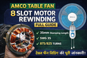 अगर आप table fan की rewinding सीख रहे हैं या daily repair work करते हैं, तो यह data आपके लिए बहुत useful है। इस पोस्ट में हम AMCO table fan के 8 slot, 35mm stamping वाले motor की पूरी detail आसान भाषा में समझेंगे।