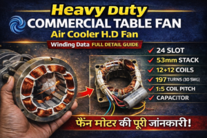 अगर आप heavy duty table fan या air cooler fan की rewinding करते हैं, तो यह data आपके बहुत काम आने वाला है। यह खासकर उन fans के लिए है जो ज्यादा load पर चलते हैं और लंबे समय तक use होते हैं।